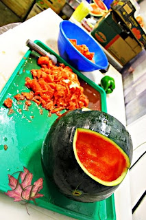 This next step, scooping out all the melon, was the most time consuming-